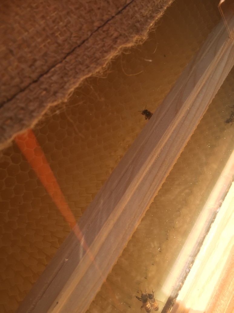 플로우 하이브 통에 벌이 넘쳐서 분통 하였는데 여왕별이 탄생했다. 과거 분통 했던 글은 https://sailinglife.tistory.com/39 분통을 하고 약 14일만에 여왕벌이 나왔다. 지난주 일요일 내검을 하면서 기존에 있던 왕대들이 다 제거되고 있어서 깜쪽 놀랐다. 여왕벌이 출방을 한 것인지 어쩐 것인지 왕대는 뭔가 나온 것 같은데, 아무리 보아도 여왕벌이 없어서 걱정이 많았다. 다시 내검을 하고 또 내검을 하고 보니 이렇게 이쁜 여왕이 탄생하셨다. 어딨는지 보이나요? 처녀왕은 교미한 왕보다 엉뎅이가 짧고, 생김세가 일벌과 비슷해서 찾기 어렵지만, 자세히 보면 엉뎅이가 역삼각형 모양이고, 검은띠가 거의 없으며 등에 털이 없고 맨질맨질합니다. 또 다리가 좀더 굵습니다. 보이시나요?