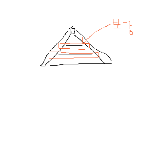 그림에서와 같이 보가 없이 지붕 서까래를 노출 시킨경우에 지붕의 하중을 지탱해 주는 보가 없기 때문에 하중이 바깥쪽으로 작용하게 되고 최악의 경우 지붕이 내려 앉거나 집이 무너질 수도 있다.