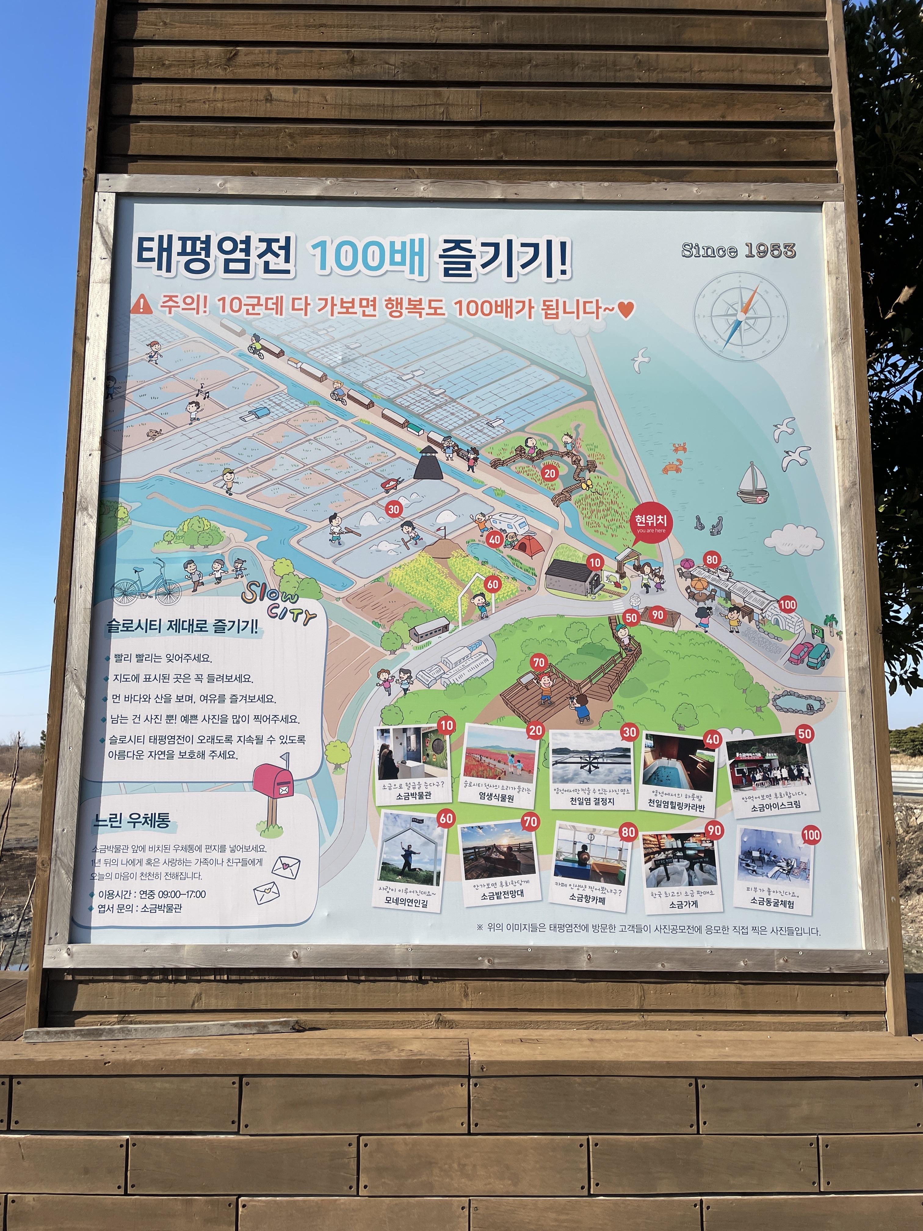태평염전에서, 소금박물관, 소금카페에 들러서 소금 아이스크림을 먹고, 한 바퀴 산책 했다. 염전에 가서 체험(겨울은 안 하는 듯) 장에 가서 써레도 돌려 보았다.