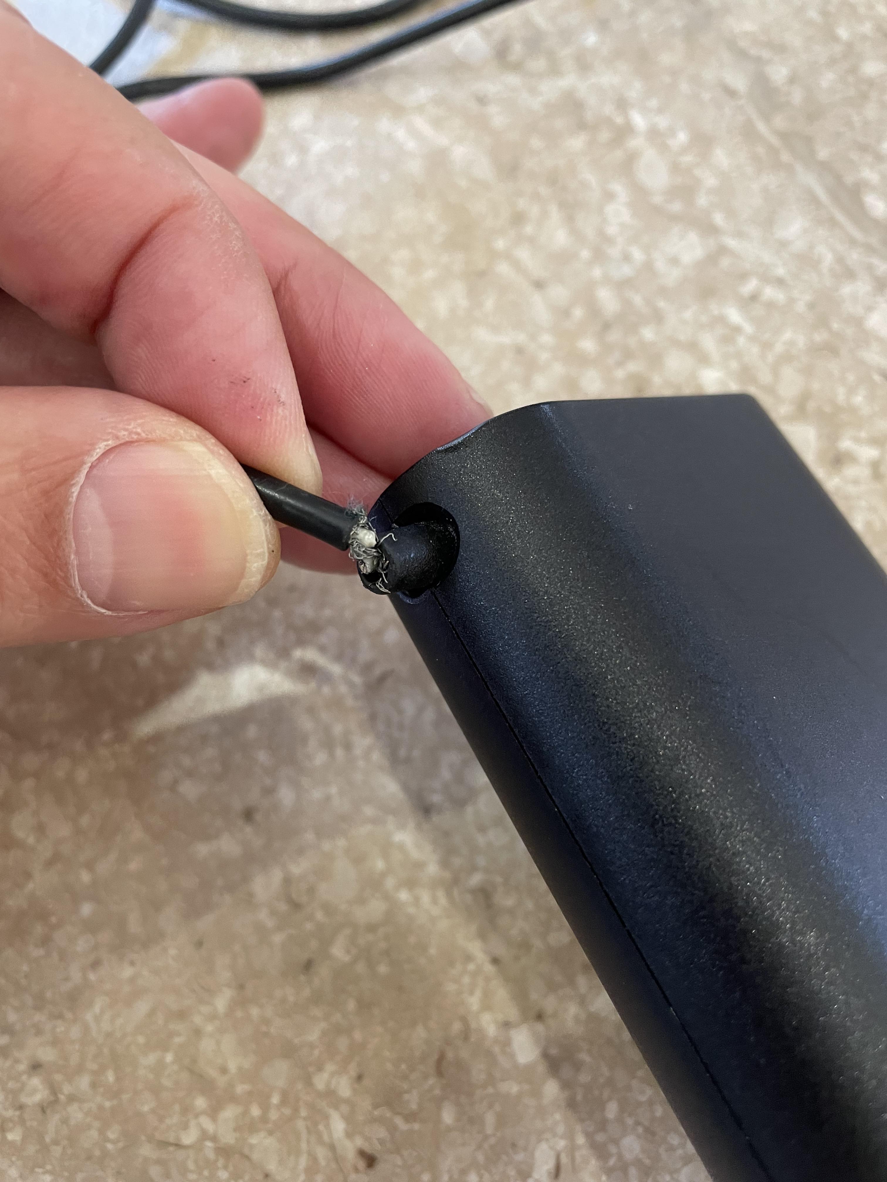 여기서 예방 트릭이 들어갔는데, 나는 전선 까임이 고무 몰딩 아래쪽 공간이 짧아서 까였다고 판단했다. 이게 쉽게 튀어 나오는 구조였다. 까인 게 아니라, 끝선이 빠져나온 것이리라 생각된다.
