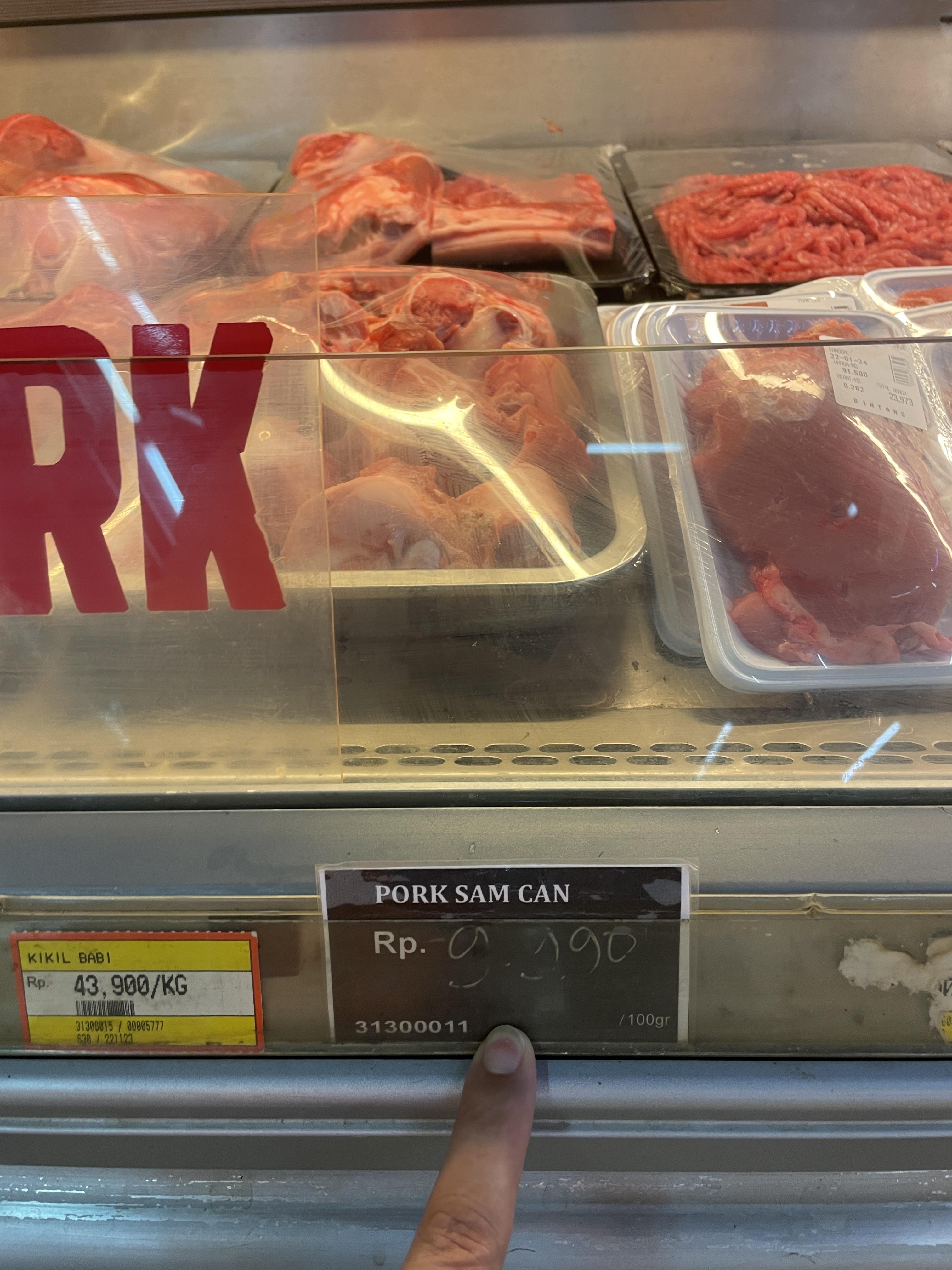 뒷편에 보이는게 삽겹살입니다. 1kg에 8천원입니다. 매우 저렴하네요. ^^