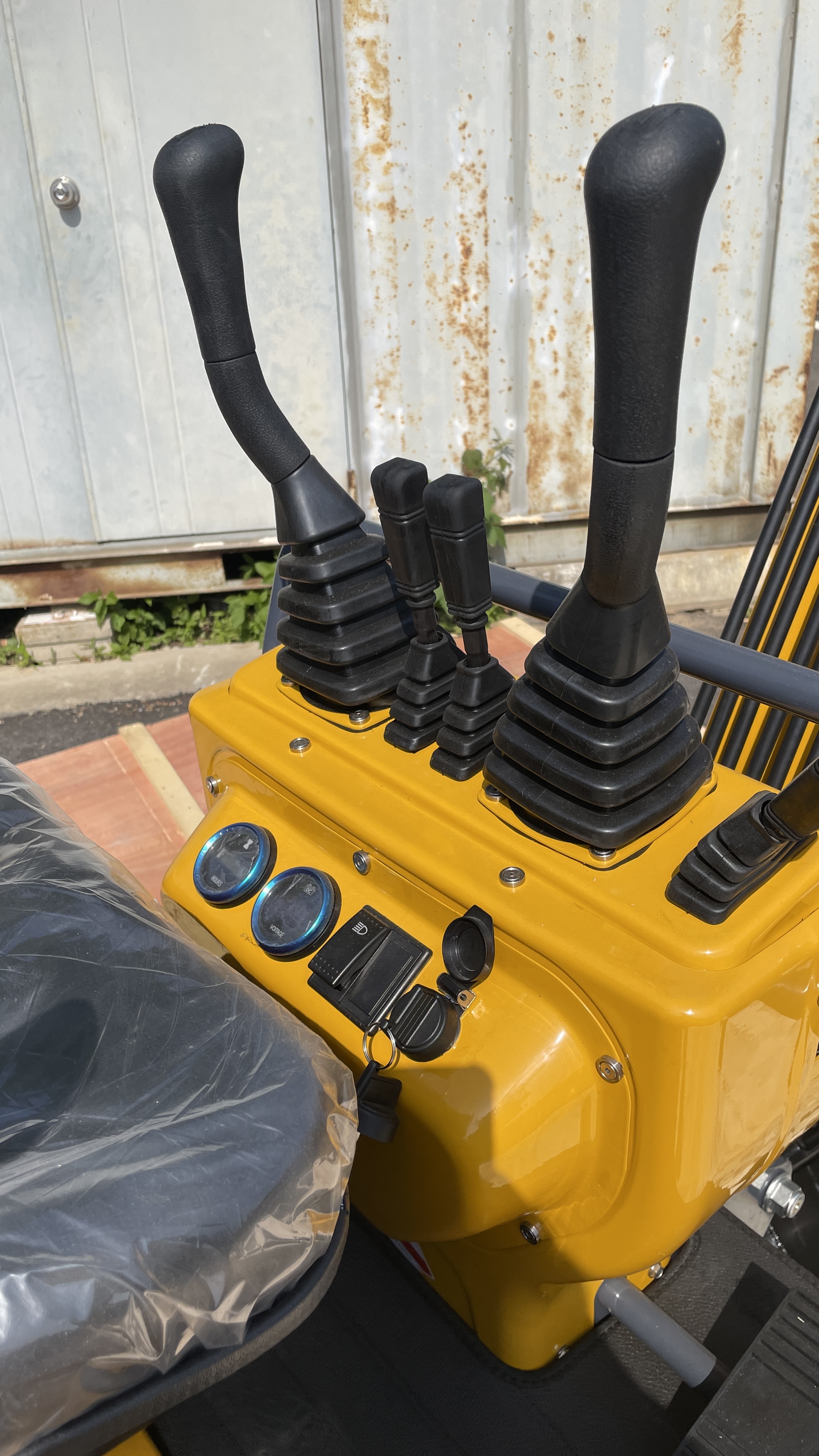 레버 왼쪽은 1번 붐대와 스윙이고, 우측 레버는 2번 붐대, 3번 버켓이다. 가운데 레버는 전진 후진이다. 계기판은 볼트게이지와, 사용시간이 측정된다. 전조등도 있다.