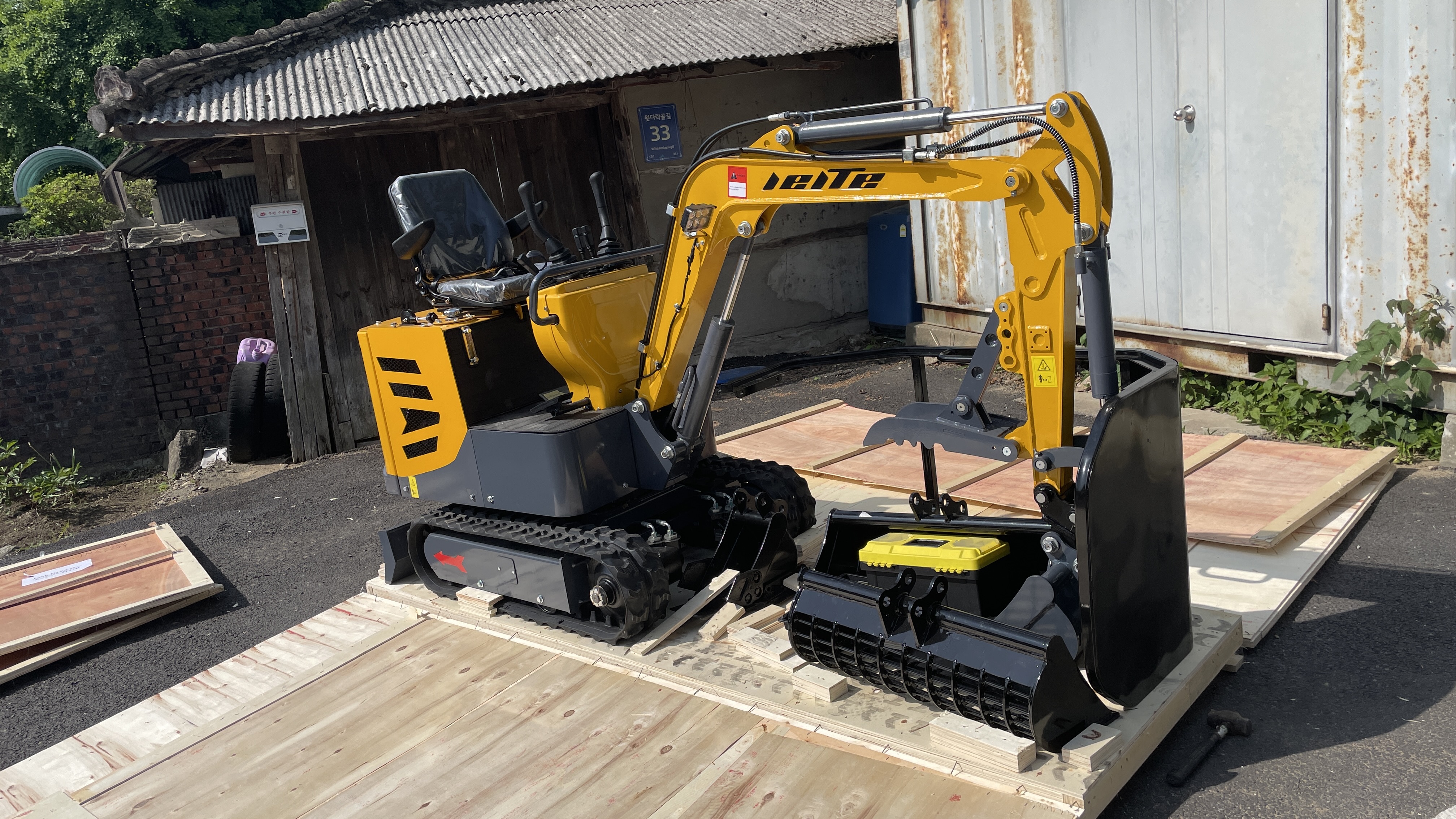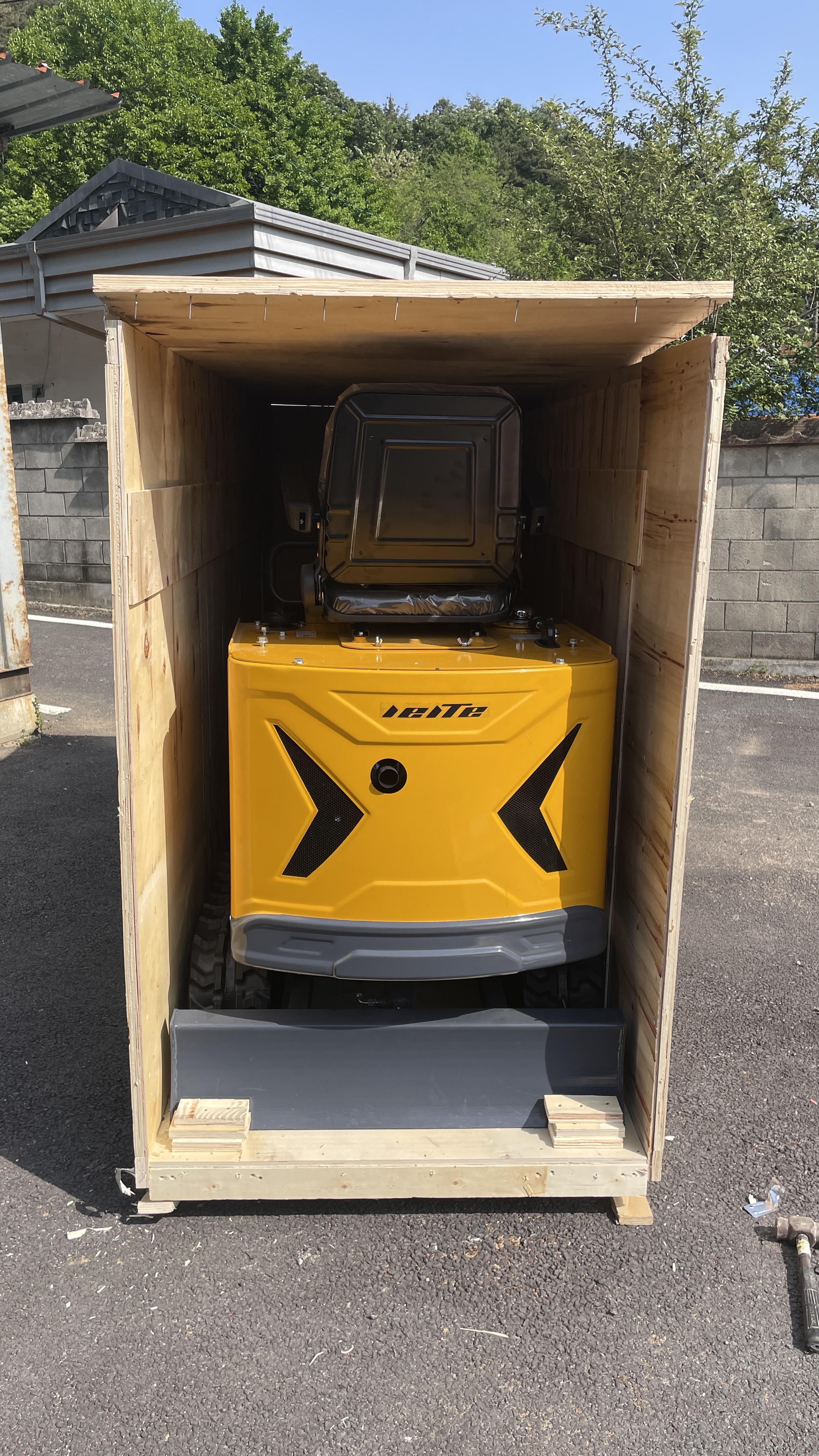 화요일 중국에서 구입한 미니 굴삭기가 도착했다. 20일 걸린다고 하더니, 한달 하고도 10일이 더 걸렸다.