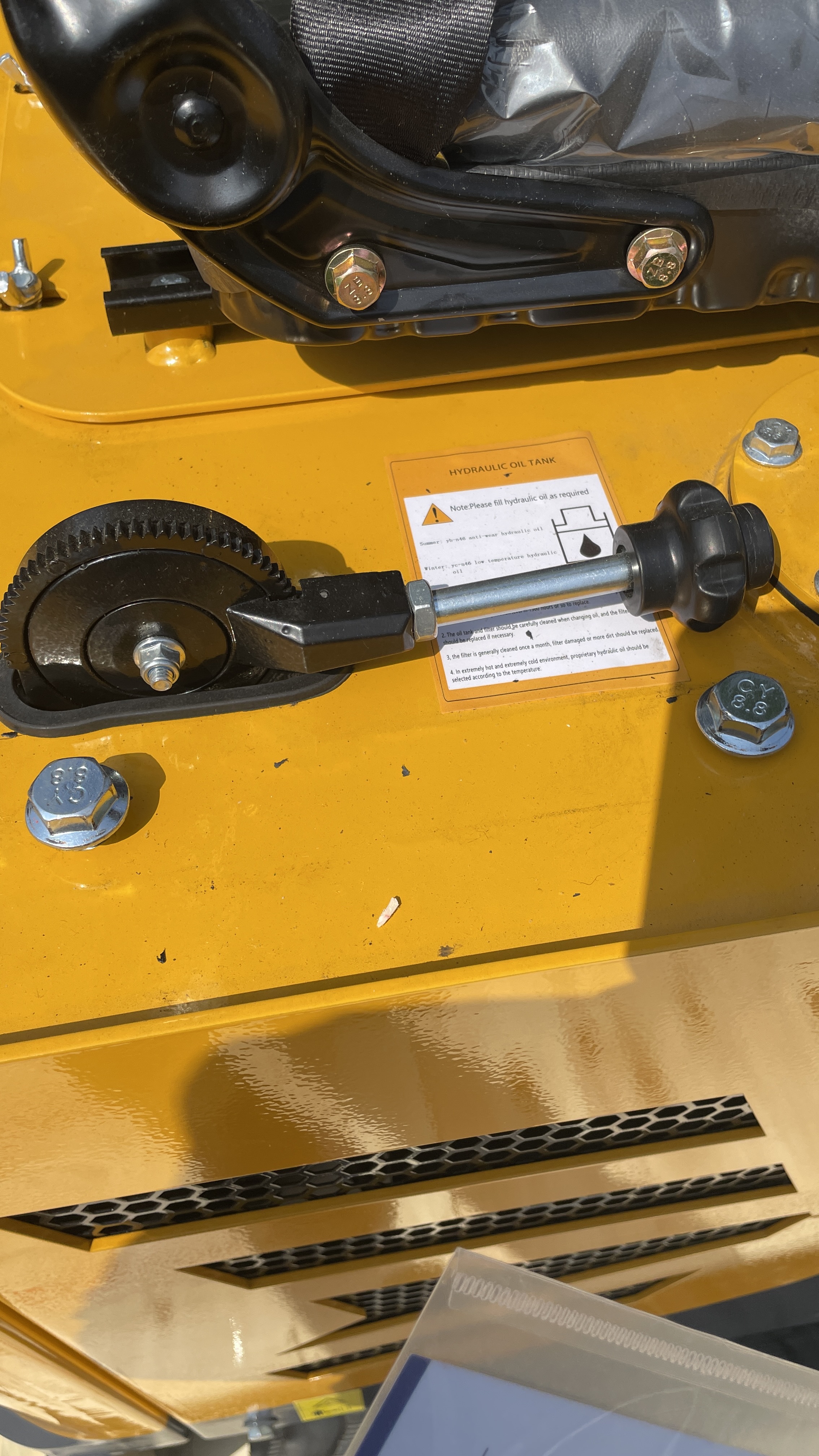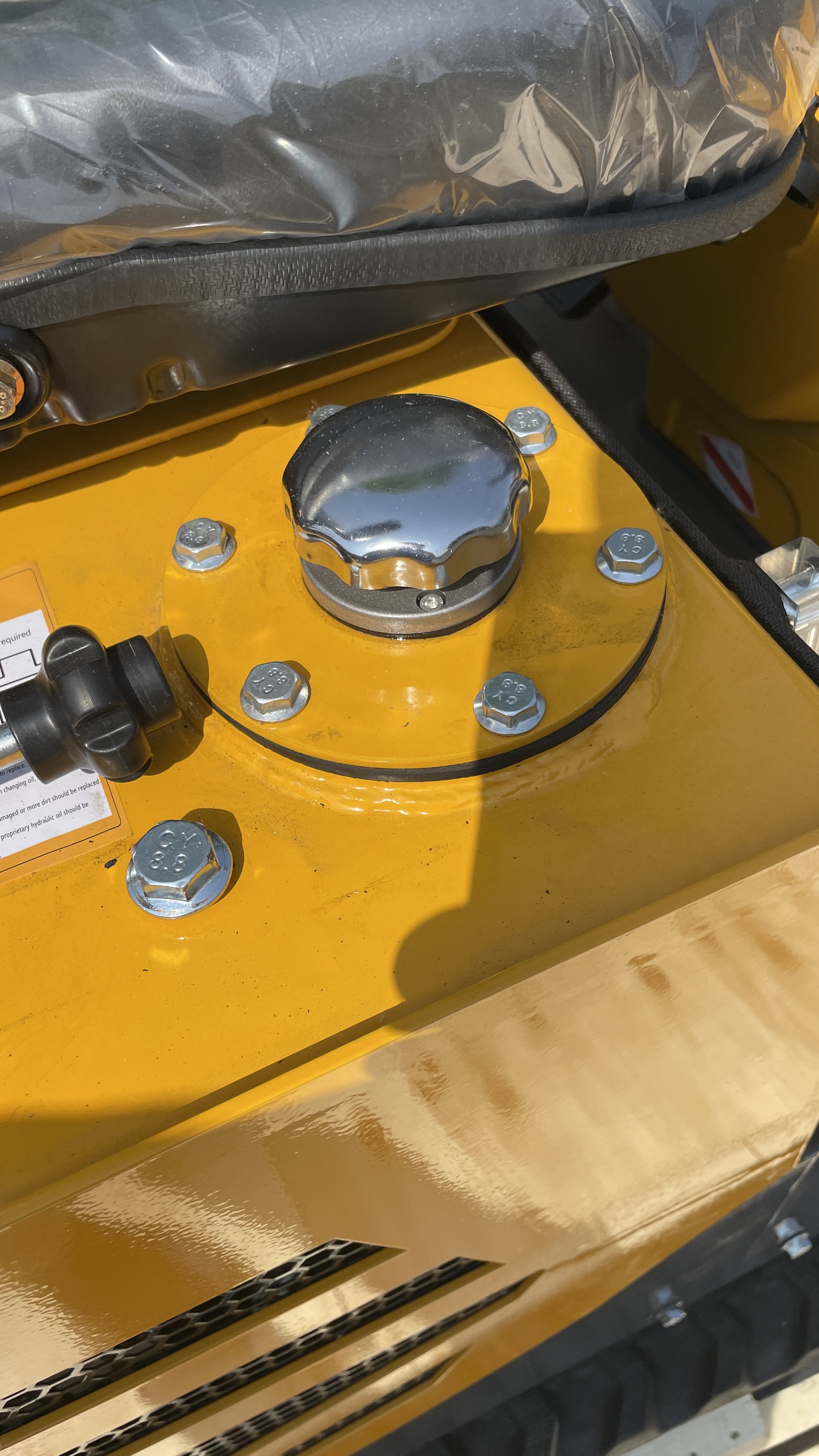 몸체 우측에는 유압유가, 좌측에는 연료통이 있다.
