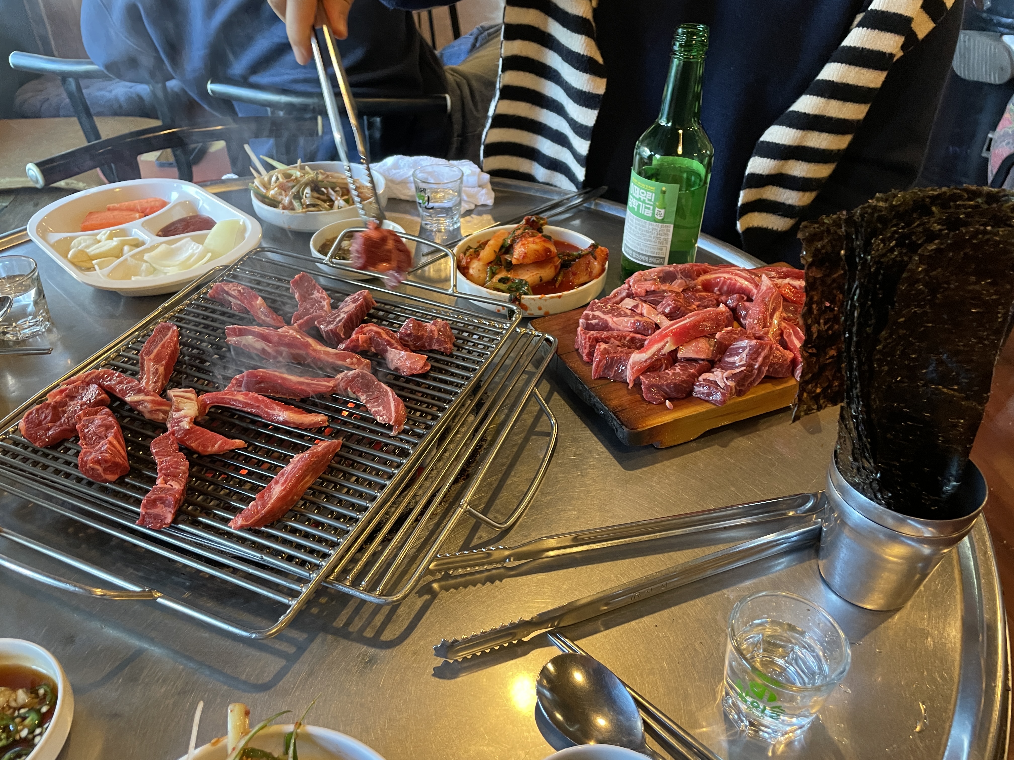갈비살과, 안창살 같이 먹었는데, 갈비살은 쫀든, 안창살은 부드럽다.