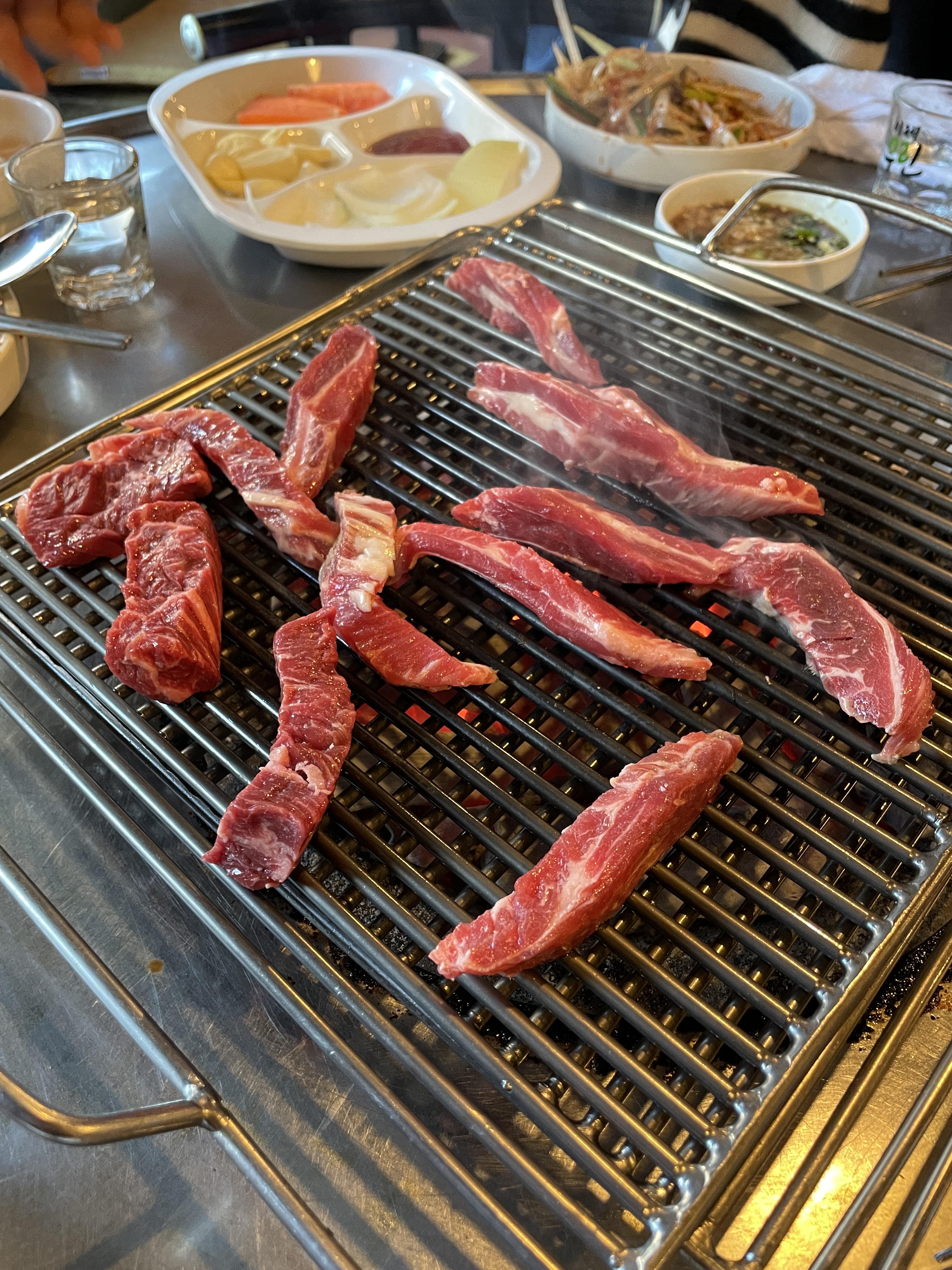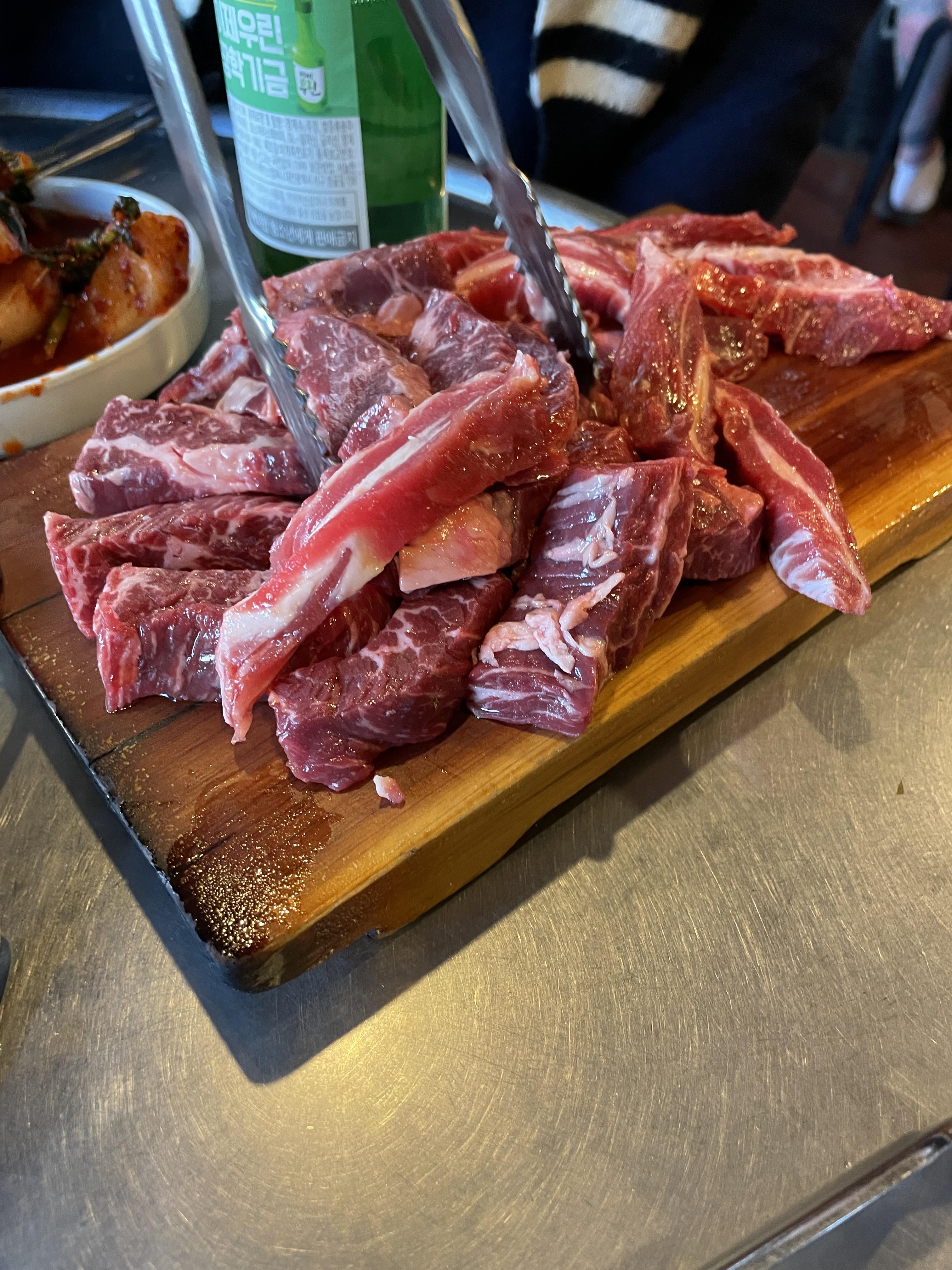 갈비살과, 안창살 같이 먹었는데, 갈비살은 쫀든, 안창살은 부드럽다.