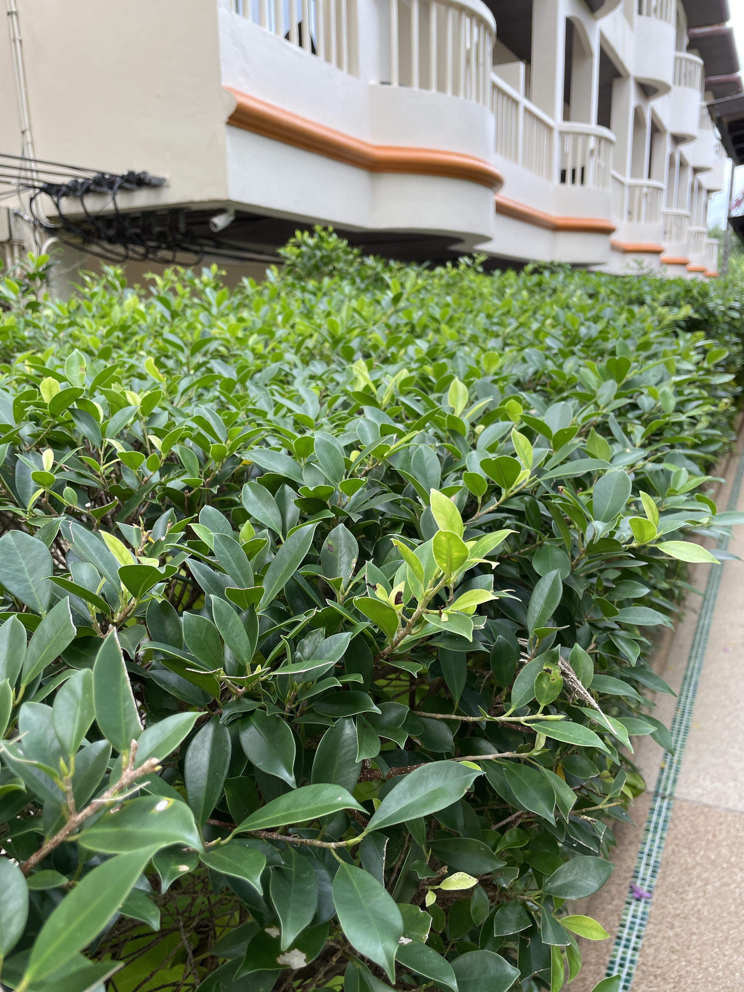 대만 고무나무 인것 같은데 확실치는 않다. 담장용으로 사용하는 것 같다
