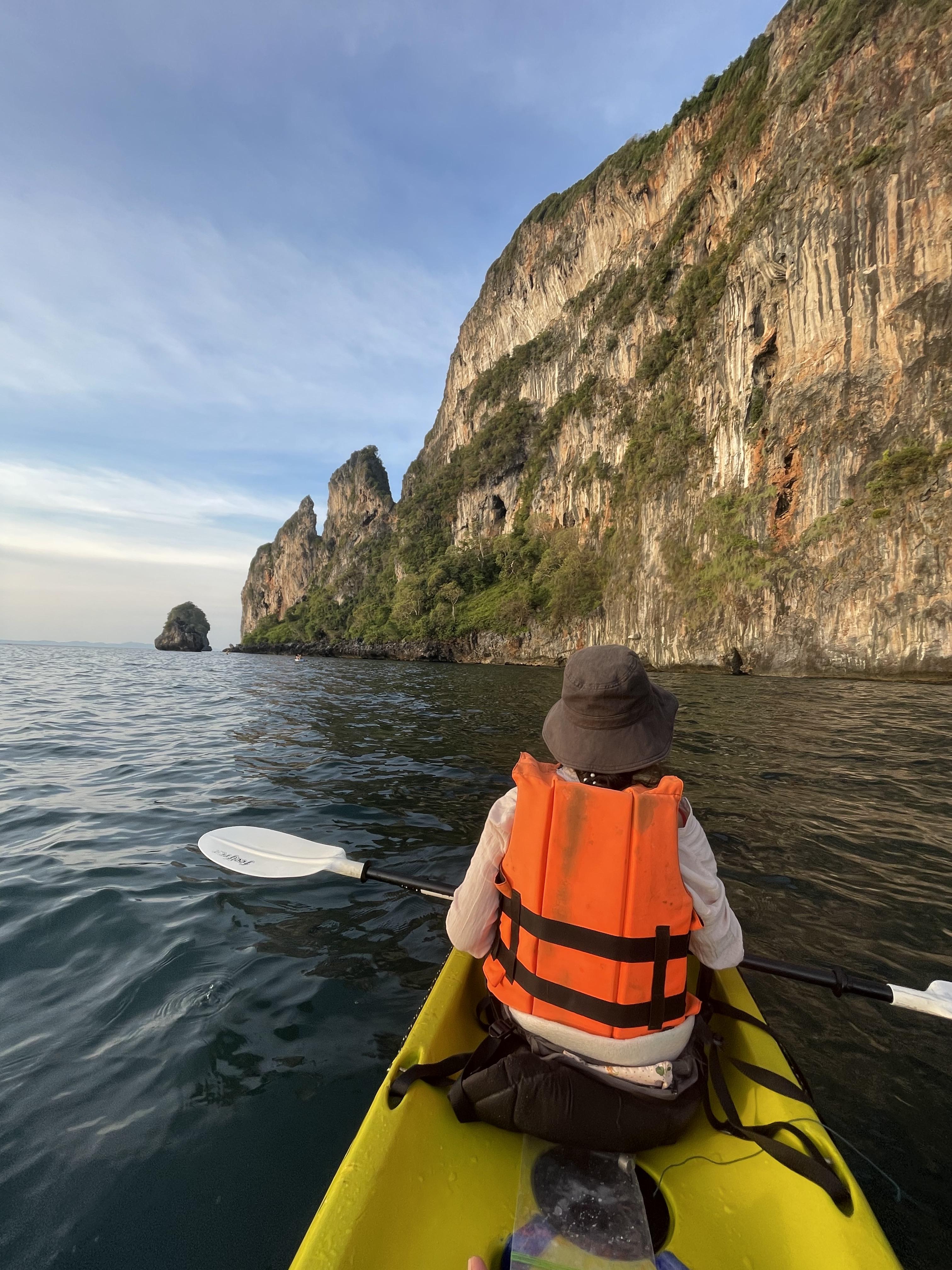 피피섬 북쪽 비치에서 250밧에 1시간 카약을 탈 수 있다. 수영 잘한다고 으스대지 말고, 구명조끼는 꼭 입자.