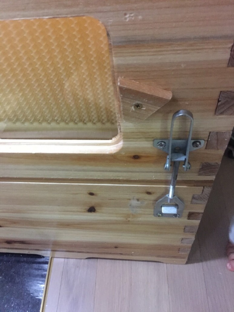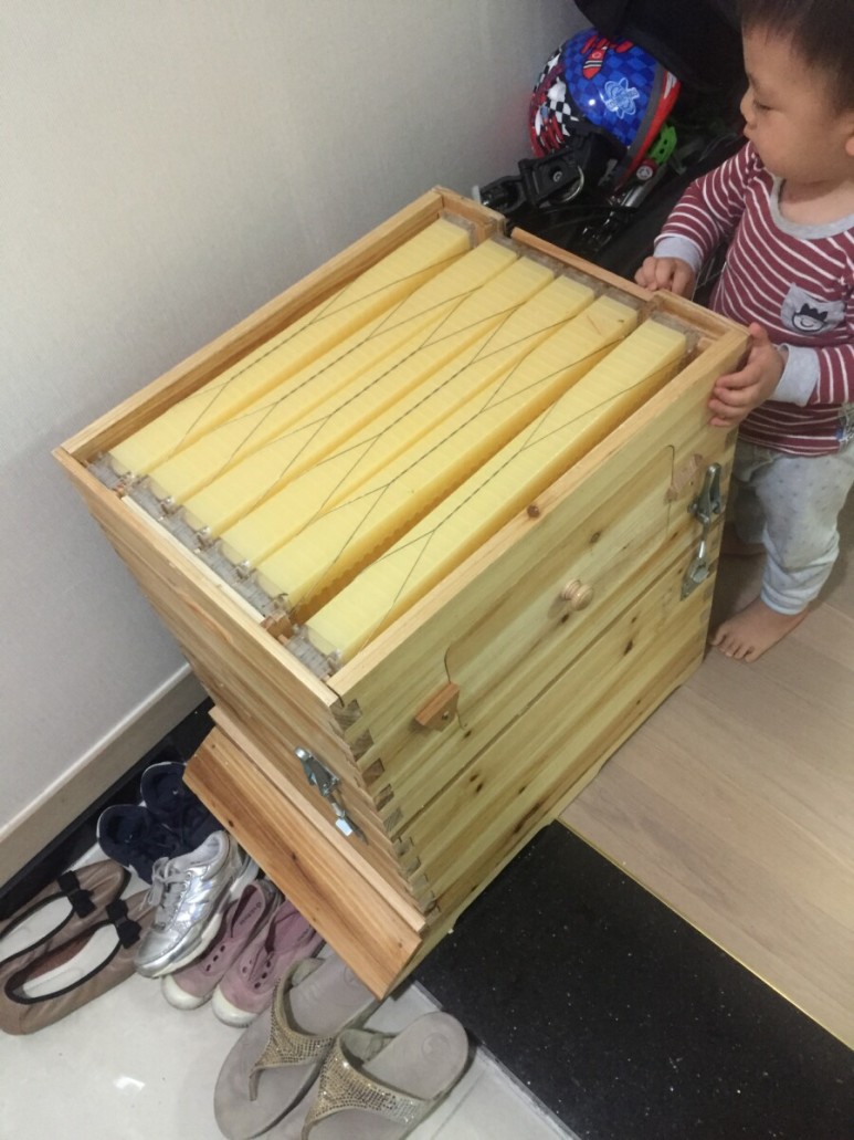 또, 중국에서 최근 유사(페이크) 플로우하이브 프레임을 판매 중인데, 벌통을 보니 국제통용 langstroth 사이즈가 아니라서 가목을 대주어서 고정시켰다