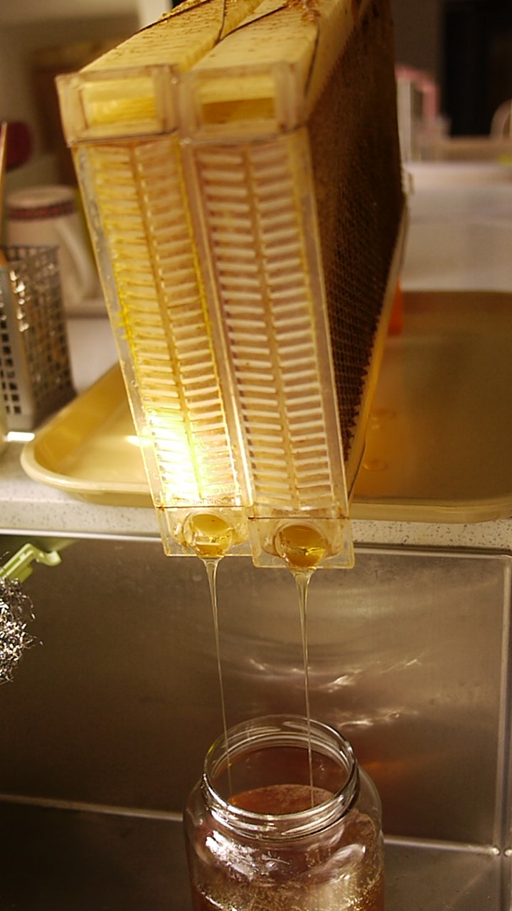 아래는 프레임이 틀어진 모습이다. 벌들이 조소를 해서 프레임 모양이 완성되었었지만 수확하기 위해서는 틀어야 꿀이 아래로 흐른다.