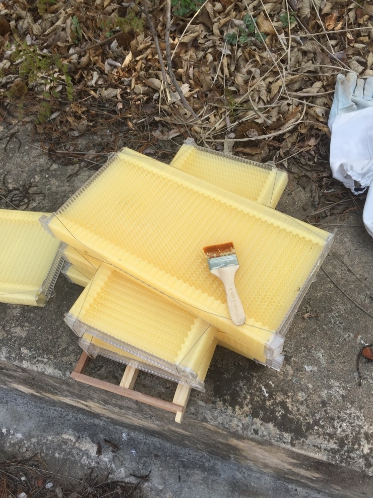 -난 처음 순밀이 없어서 어떻게 해야 하나, 어디서 사야하나 걱정했지만, 알고보니, 내가 예전에 사 두었던 순밀 소초가 생각나서, 순밀 소초 한장을 녹이니, 플로우프레임 6장 하고도 남았다. 물론 아주 꼼꼼하게 바르지는 않았다-
