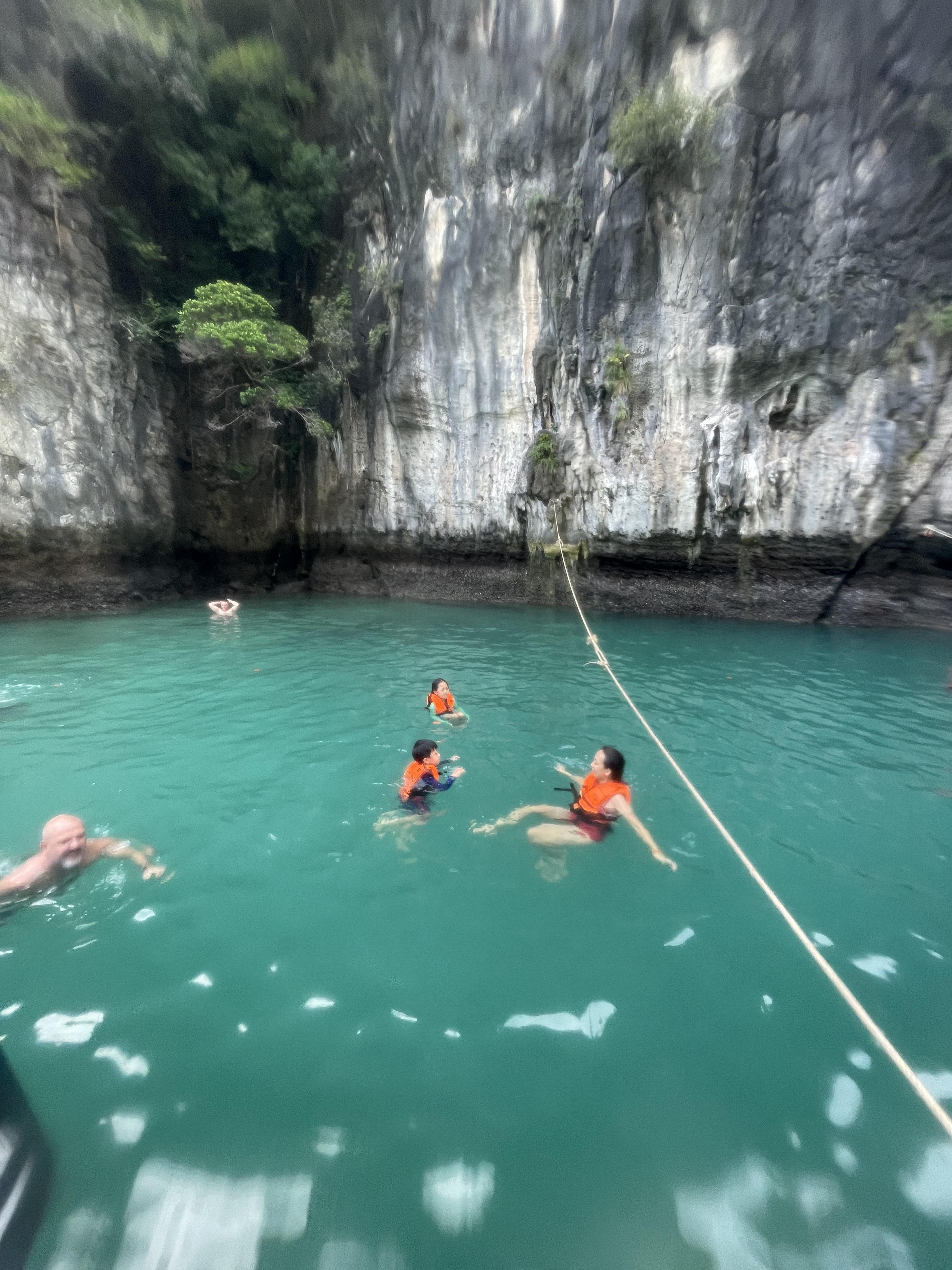 라군은 사전을 찾아보니, 석호를 의미하는 것 같다. 바다에서 움푹 들어간 작은 만의 형상을 갖고 있는 곳을 의미하는 것으로 보인다. 형상은 절벽에 둘러 쌓인 운하와 같은 모습이었다. 아름 다운 절경 속에서 수영을 할 수 있었다. 고기는 없었고, 깊이는 상당했다. 수많은 배와, 인파로 조금 위험할 수 있다는 생각이 들었고, 우리 배는 사람 둘을 잃어버리는 사건이 발생하고 말았다. 나와 우리 딸은 분명 인원 체크를 제대로 하지 않고 출발하는 것을 보았고 스노클링 포인트에서 두 명이 보이지 않는다는 것을 선장과 가이드는 그제야 알았으며, 스노클링 포인트를 헤집고 두 명을 찾아 댔지만 찾지 못했다. 왜냐면 필레 라군에서 놓고 왔기 때문이다. 나는 분명 가이드에게 말을 했는데, 가이드는 내 영어가 너무 유창했는지, 영어를 넘 못 해서인지 모르지만 잘 알아듣지 못하는 것 같았고, 아니라며 손사래만 쳤다. 이후 우리는 그 둘을 보지 못했다.