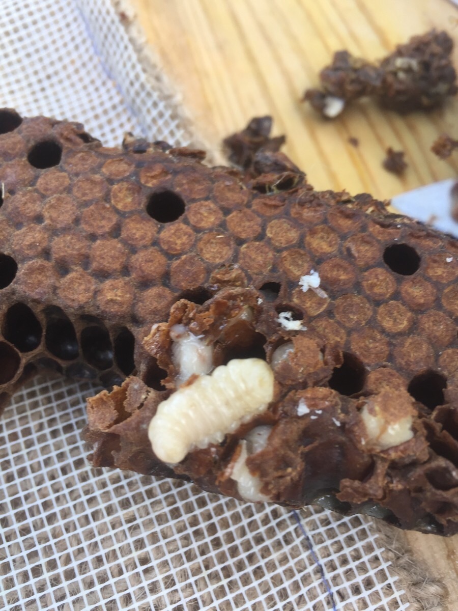 수벌 애벌레를 빼내서 응애가 있는지 확인해 봅니다 깨끗하네요