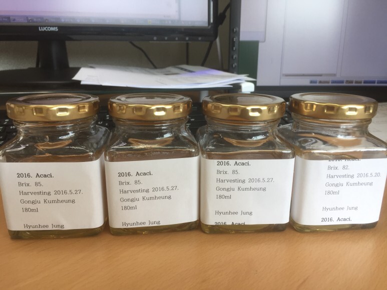 꿀을 집에 가져와서 병에 담아 본다. 인터넷에서 구입한 고급 1.8미리짜리 병에 정성 들여 담고, 라벨링을 했다. 첫 수확한 올해 꿀들은 절반 이상 선물로 줄 참이다.