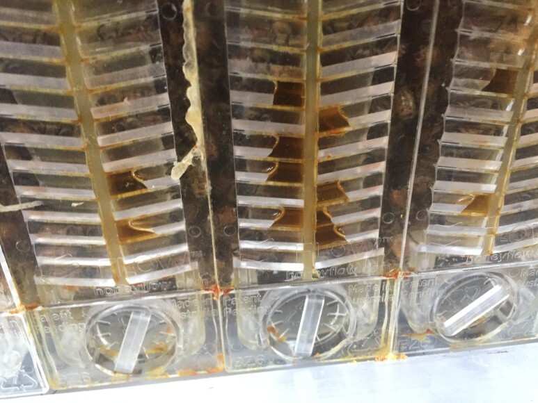 참고로 플로우 하이브 프레임은 한장당 꿀이 3키로 정도 생산됩니다.