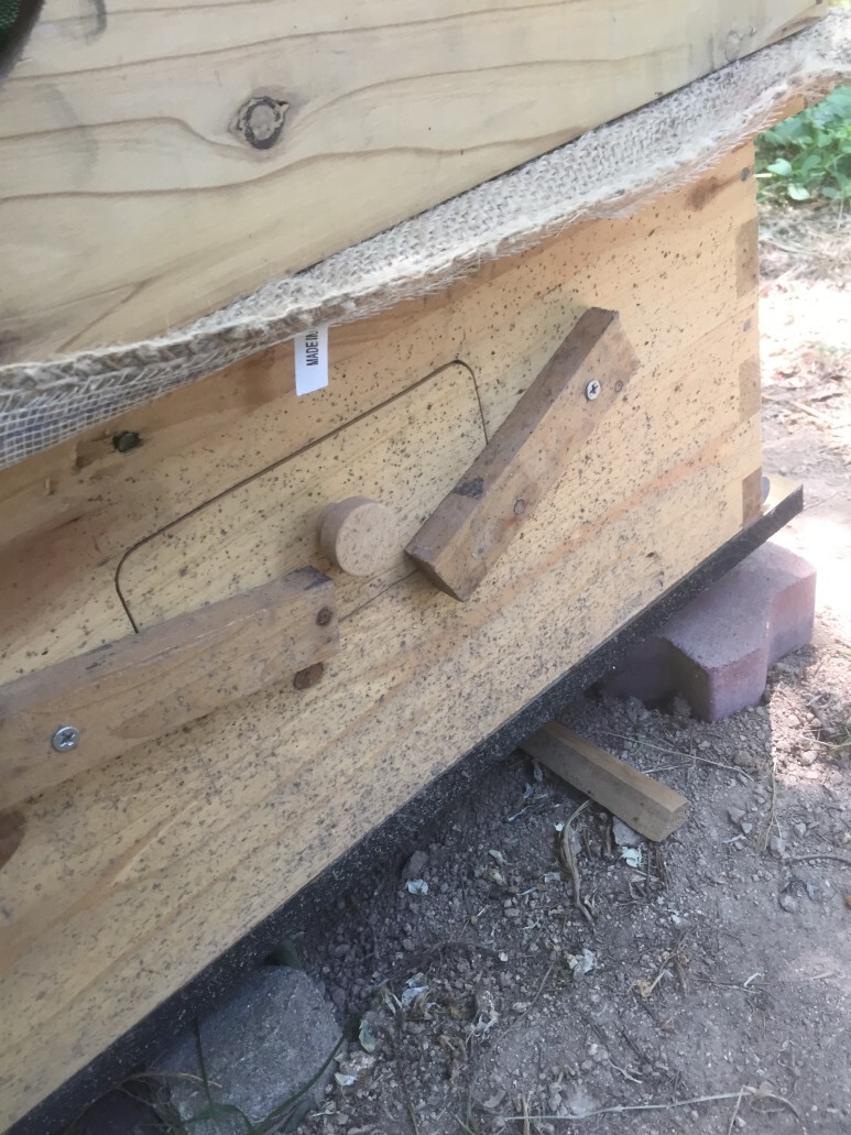 소문 뒤쪽에는 플로우프레임 키가 들어가는 곳과, 아래쪽에 꿀이 나오는 곳이 있다. 지금 생각해 보니 꿀을 따려면 벌통의 위치를 올려야 하겠다.