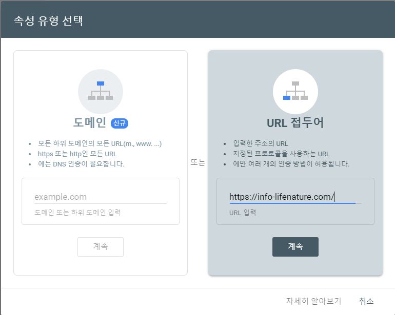- 등록할 사이트 주소 입력하고 계속 클릭