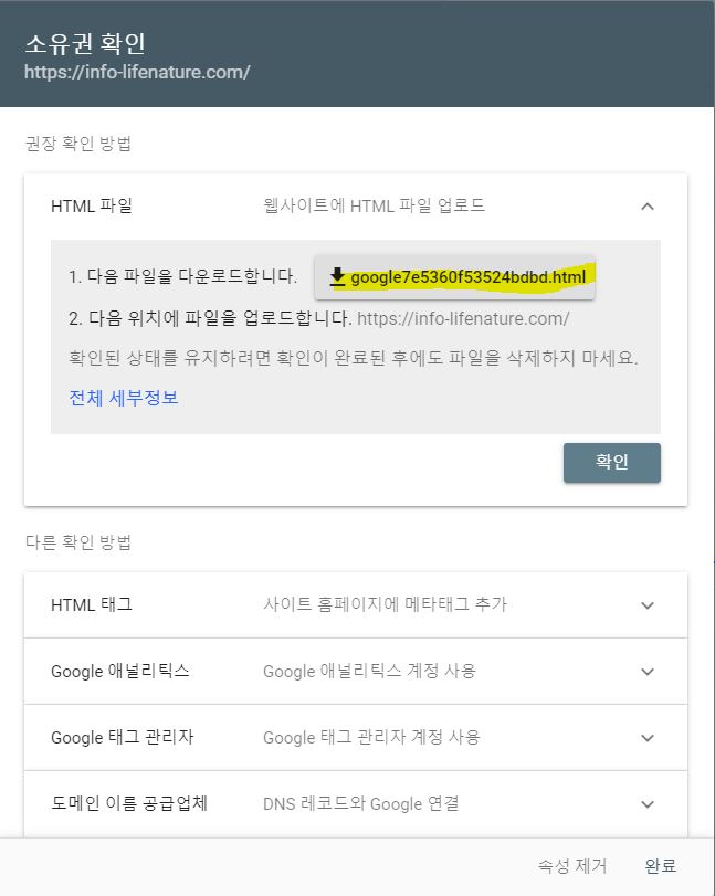 2. 소유권 확인을 위한 HTML 파일 다운로드
