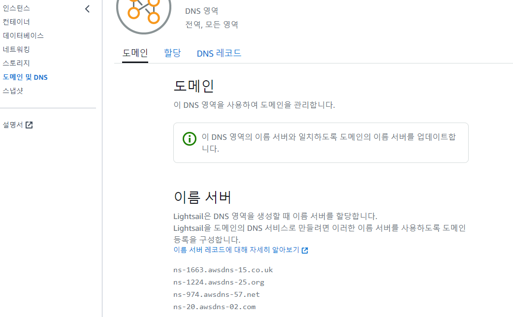 2. 새로 구입한 도메인은 LightSail 에서 변경한다.